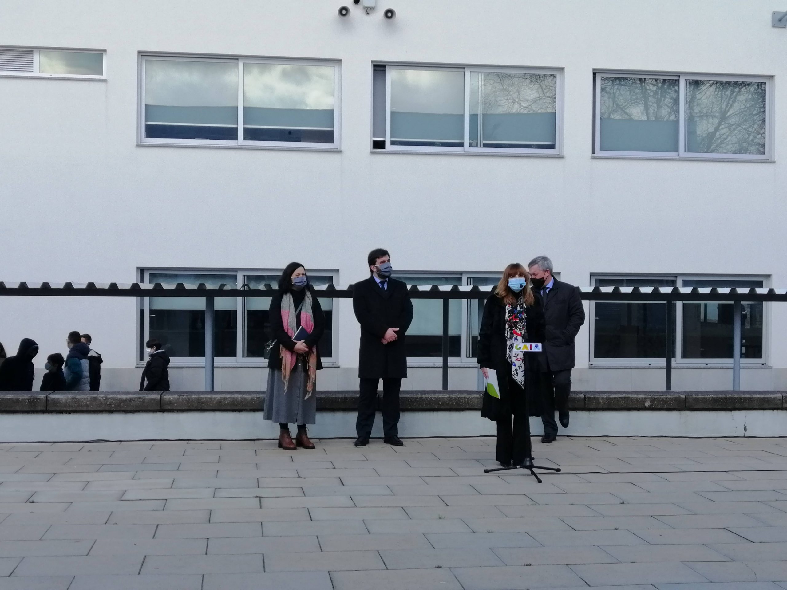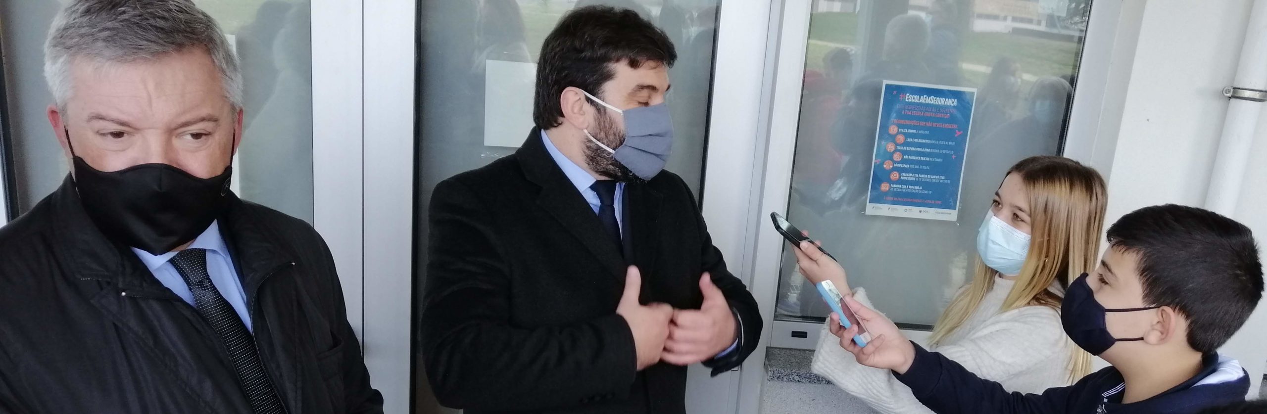 Para inaugurar a nossa NOVA escola, visitaram-nos o Sr. Ministro da Educação e o Presidente da Câmara de Gaia. O Sr. Ministro concedeu uma entrevista exclusiva à R@dares, tendo confessado estar impressionado com o nosso Projeto Educativo. Pelos vistos, todo o Ministério da Educação será obrigado a ouvir a nossa rádio… disse, em tom de brincadeira!